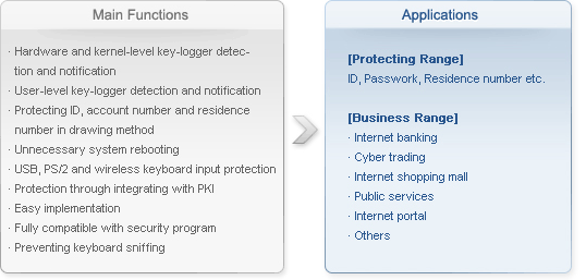 Implements safer service environment for API and BHO hooking through AhnLab's unique memory protection technology and function-virtualization along with E2E integration.
