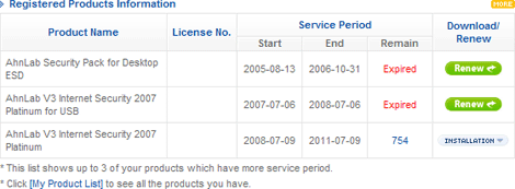file downloads, AhnLab provides you with your installation file for free until your expire date.